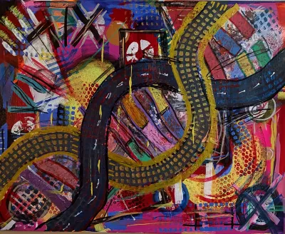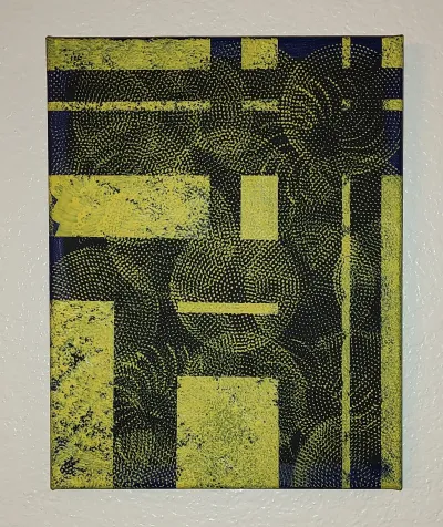 My work explores the intersection between structure and spontaneity. As a dialogue between geometric order and the raw energy of the urban environment, influenced by the purity of form and color found in the works of Rothko, Mondrian, Martin, and Scully, my paintings use shape, rhythm, and repetition to build visual architecture. These structured compositions are then disrupted by layers of graffiti-inspired texture, drips, and gestural marks, introducing elements of chance, imperfection, and urban grit.
