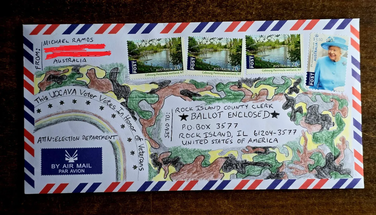 envelopemailballotveteranscamouflagestampsAustraliaStorytelling / NarrativeInspirational / UpliftingBold / GraphicPatriotic / Military / FreedomVeteran Story / ServiceHistorical / CulturalConflict / Sacrifice