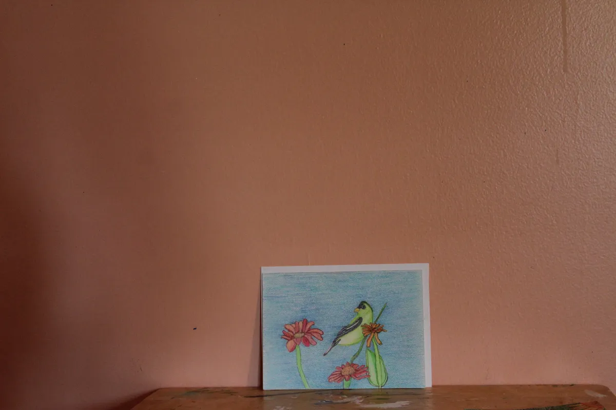 BirdFlowersColored PencilDrawingStill LifeNatureWall ArtRealismLight / SereneAnimals / WildlifeStill Life / ObjectsLandscape / Nature