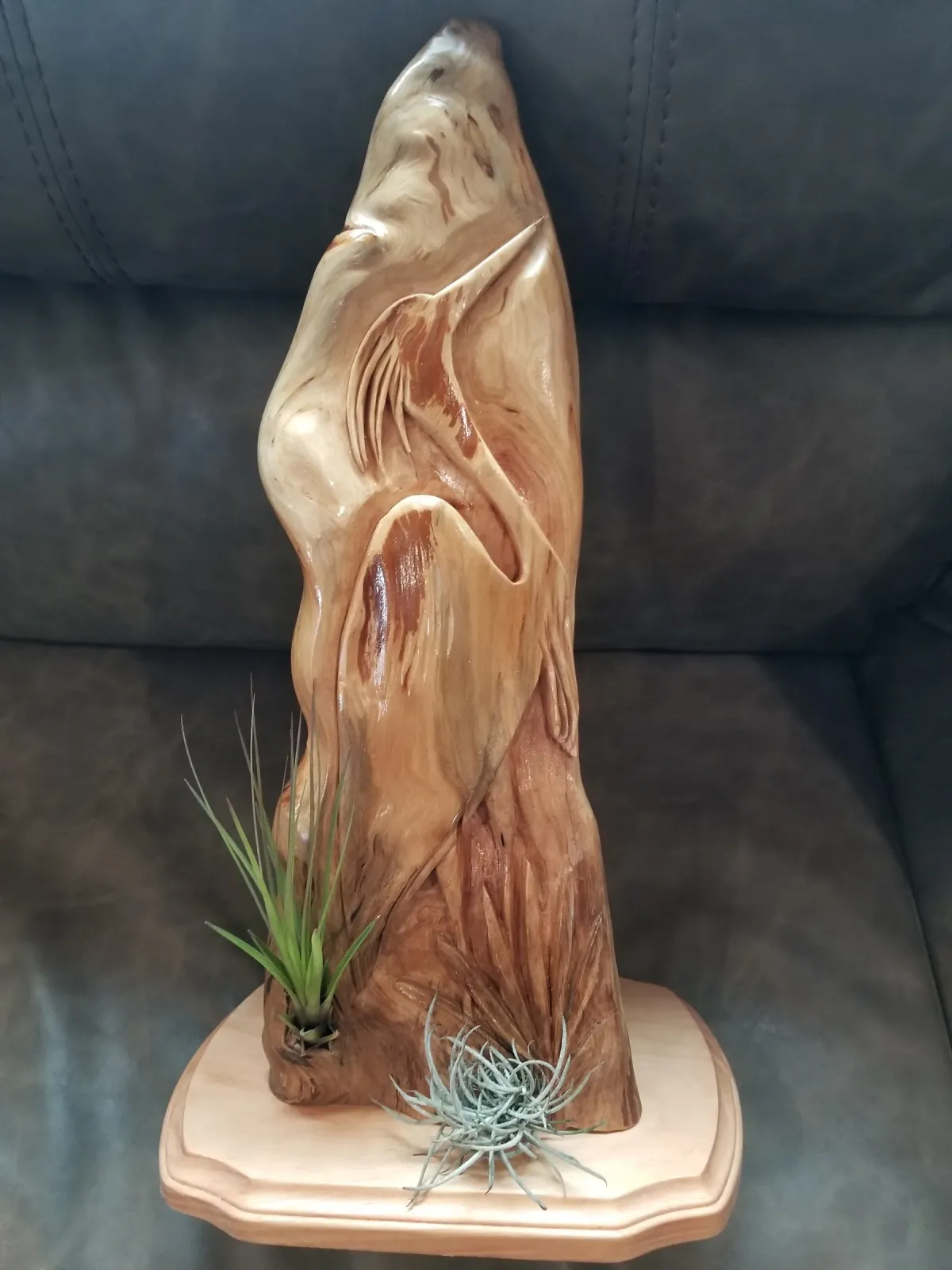 wood carvingsculptureheronair plantnatural woodhandcraftedbird artRealismContemporary / ModernLight / SereneTherapeutic / ReflectiveLandscape / NatureAnimals / WildlifeStill Life / Objects